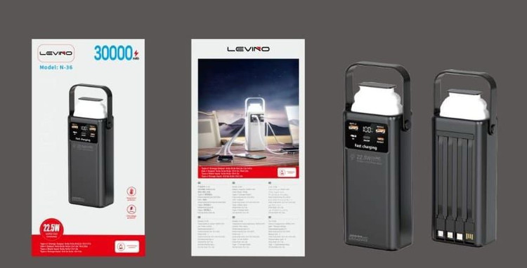 پاور بانک 30هزار LEVINO فست شارژ با چراغ قوه