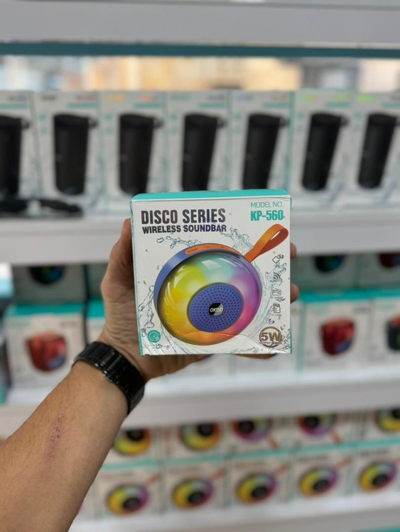 یکی از جذاب ترین اسپیکر های بازار KP-560 است. این اسپیکر سبک و قابل حمل است. نورپردازی RGB دارد که جلوه زیبایی به آن می دهد و در شب می درخشد. کیفیت خوبی دارد و از ویژگی های آن می توان به عمر بالای باتری اتصال با بلوتوث و پشتیبانی از پورت های USB و ... اشاره کرد.