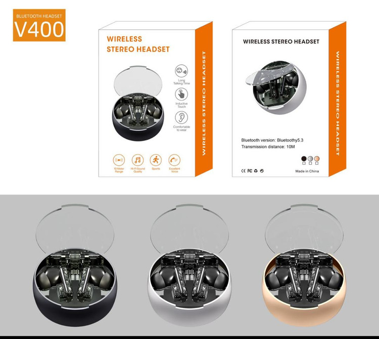 ایرپاد شیشه ای مدل Wireless Bluetooth Stereo Headset V400 یک کار بسیار قدرتمند با طراحی بی نظیر است.