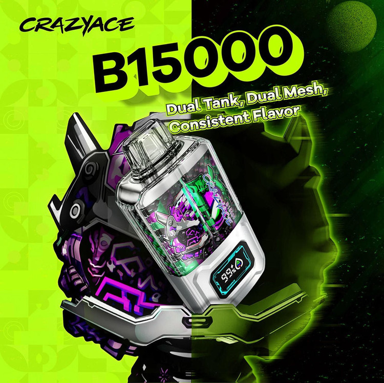 ویپ های یکبار مصرف CrazyAce مدلB15000 دارای طعم های بسیار با طعم دهندگی قدرتمند.